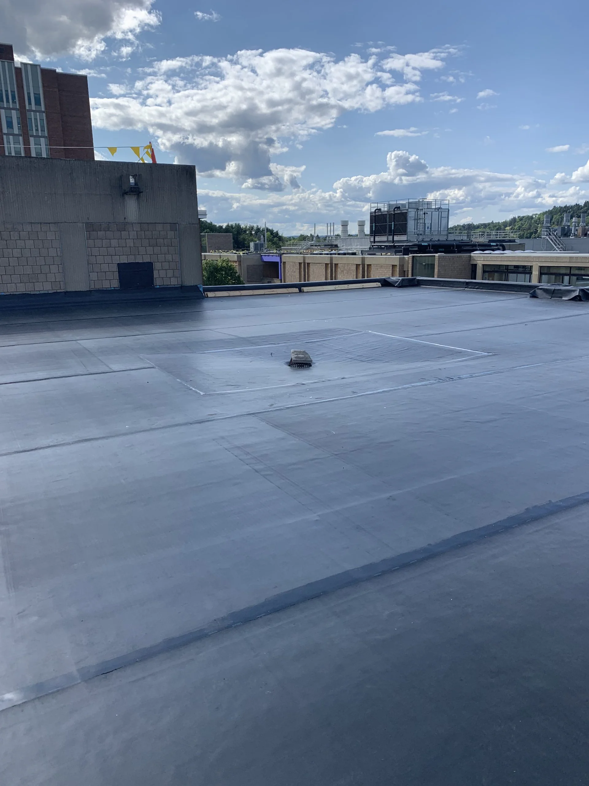 Complete commercial roofing system replacement for multiple campus buildings, including TPO membrane installation and energy-efficient insulation upgrades.